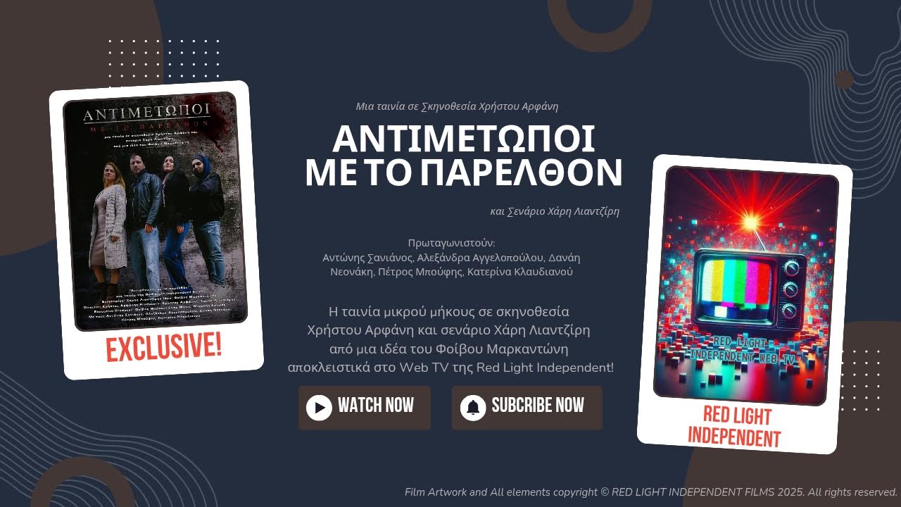 Μην χάσετε την ευκαιρία να παρακολουθήσετε την ταινία “Αντιμέτωποι με το Παρελθόν” και να ανακαλύψετε ένα σκοτεινό μυστικό που θα σας στοιχειώσει, εντελώς δωρεάν, αποκλειστικά στο Red Light Independent Web TV.