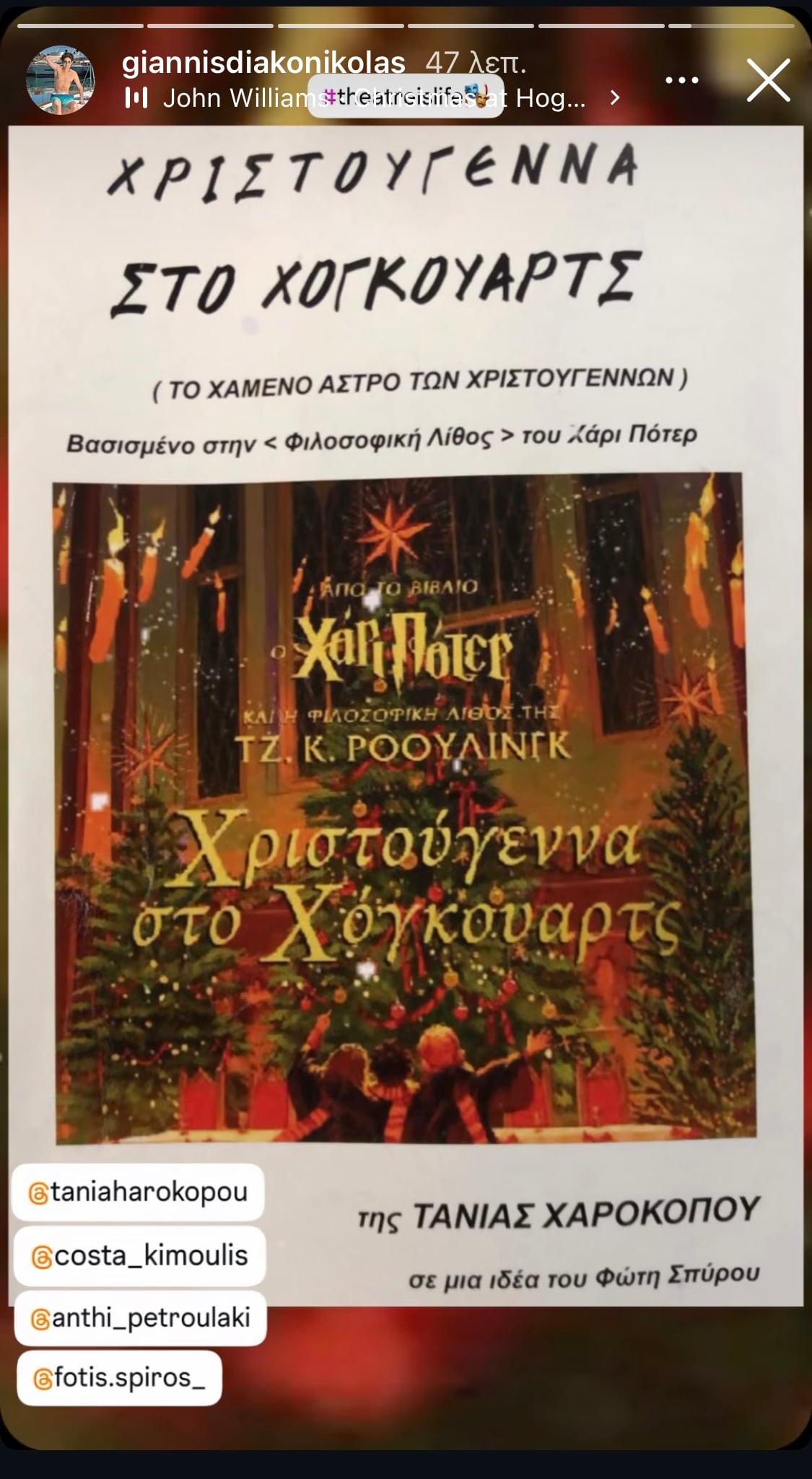 Πιο συγκεκριμένα ο ηθοποιός είχε αναρτήσει στις ιστορίες του instagram τρεις διαφορετικές δημοσιεύσεις με δυο κοινά θέματα τα οποία ήταν ο «Χάρι Πόττερ» και τα «Χριστούγεννα». Τώρα πια και μετά τις τελευταίες του δημοσιεύσεις στα social, γνωστό άλλωστε ό,τι πάντα μοιράζεται με όλους επαγγελματικά και προσωπικά θέματα, ο Γιάννης Διακονικόλας επιβεβαίωσε την καινούργια του συνεργασία-έκπληξη γι’ αυτόν τον χειμώνα.